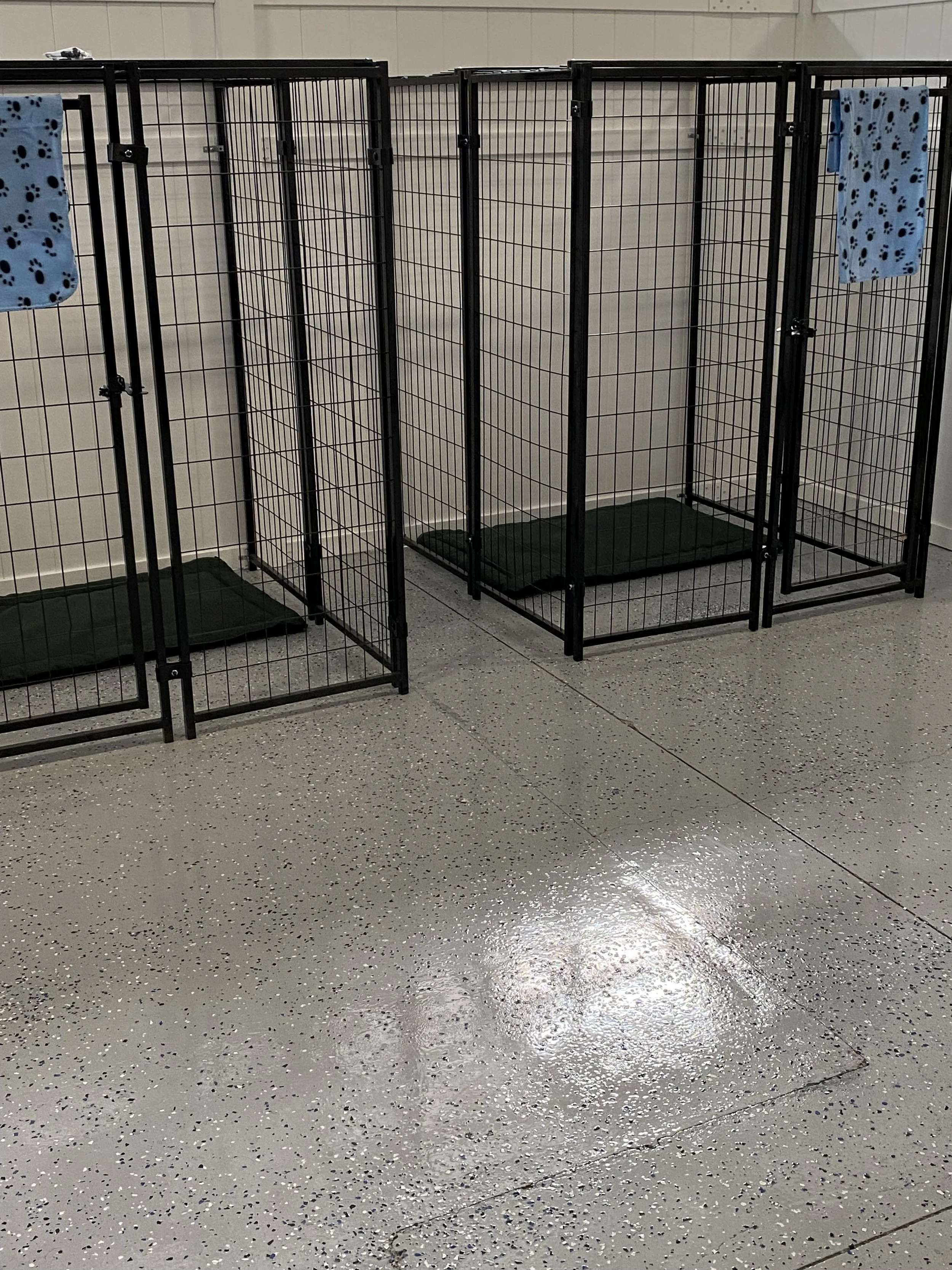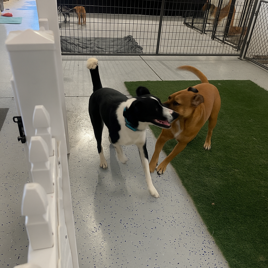 We aim to accommodate our guests in a safe environment while offering them necessary care including play, feeding and watering time, and of course potty time all without time restrictions. We understand that many people have anxiety about leaving their pets, so we created a soothing environment that is unlike a traditional kennel. By offering our guests a free play area separated by play and nurture, we can provide our guests with a stress free experience for those times when your pet can't join along.